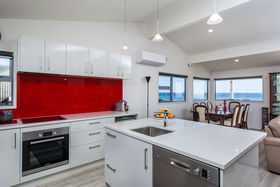The open plan lounge, dining and modern kitchen will provide you and your guests with room to entertain or you can step out onto the decks and boardwalks to enjoy the captivating views out to Motiti, Whale, White or Plate Islands, or to the Mount and Maketu.