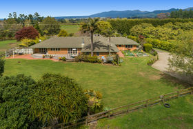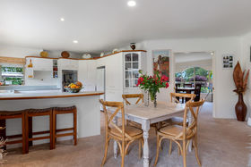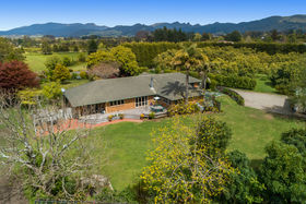 There is ample living space which you would expect of a well appointed country home, with a very large dining and lounge area, perfect for entertaining large gatherings or formal occasions. Off the kitchen is an intermate lounge/dining area which makes for easy living which also features a log burner and opens out to a sheltered outdoor patio area. With four good sized bedrooms as well as a separate wing with its own bathroom, this makes accommodating family and guests an absolute breeze without compromising on the extensive living areas. The home sits in well established grounds with the lawn bordering out into both the avocados and grazing paddocks. There is also a vegetable patch in a quiet corner of the garden ideal for sustaining your family's dietary requirements.
